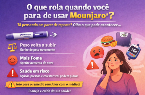Remédios que mexem com os receptores de incretinas estão bombando para tratar diabetes tipo 2 e ajudar a galera a emagrecer. Um deles é a tirzepatida, vendida como Mounjaro®, que age em dois receptores (GLP-1 e GIP), dando mais saciedade, diminuindo a fome e controlando o açúcar no sangue (AGÊNCIA…, 2025). Só que, beleza, ele ajuda enquanto você usa, mas e depois que para? O que acontece? A tirzepatida leva uns cinco dias para sumir do corpo, então, em umas 3 ou 4 semanas depois da última dose, ela já era (FELLA…, 2025). Aí, as mudanças que ela causou no seu corpo começam a voltar ao normal. Tipo, o apetite…