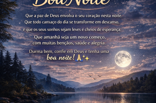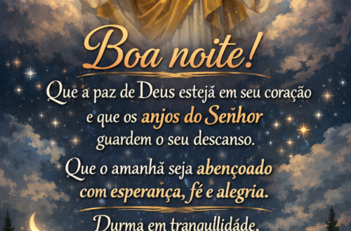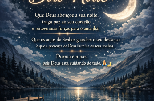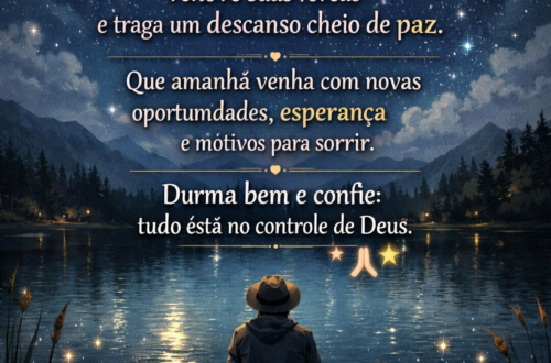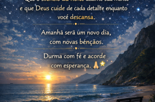 🌙 Mensagem de Boa Noite Que a paz de Deus envolva seu coração nesta noite.Que todo cansaço do dia se transforme em descansoe que sua mente encontre tranquilidade. Que os anjos do Senhor guardem seu sono,que sua casa seja cheia de paze que amanhã seja um novo dia de bênçãos e esperança. Durma bem, confie em Deuse tenha uma boa noite abençoada. ✨🙏