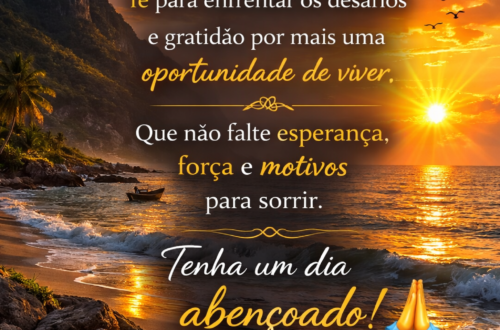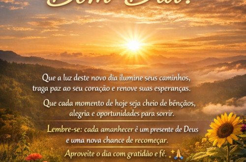 🌞 Mensagens Inspiradoras 1. Bom dia! Que hoje seja leve, produtivo e cheio de boas surpresas. 2. Acorde com fé, caminhe com coragem e termine o dia com gratidão. 3. Que o sol ilumine não só o céu, mas também o seu coração. 4. Comece o dia acreditando que tudo é possível! 5. Um novo dia é uma nova chance de fazer diferente. 🙏 Mensagens Religiosas 6. Bom dia! Que Deus abençoe cada passo seu hoje. 7. Que a paz do Senhor te acompanhe desde o amanhecer. 8. Deus já preparou bênçãos para você neste dia. Receba com fé! 9. Que os anjos do Senhor te guardem e te guiem.…