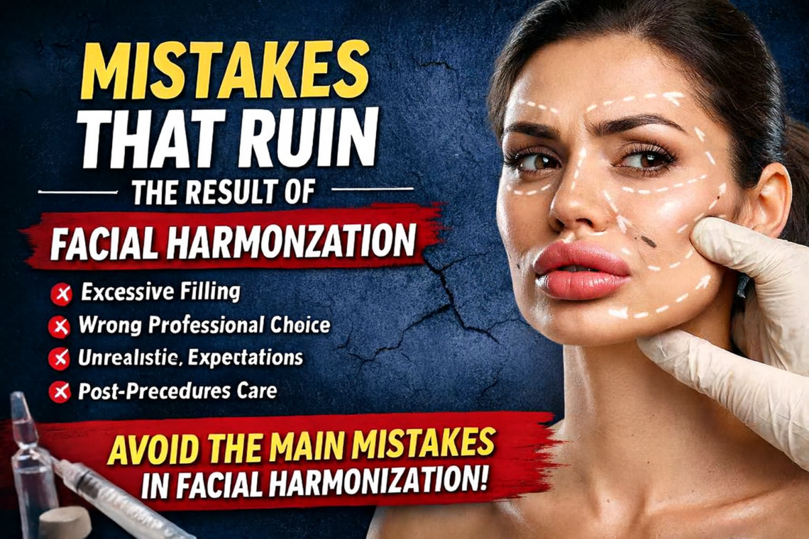 Introduction Facial harmonization has become one of the most sought-after aesthetic procedures in Brazil in recent years. With increasingly modern and minimally invasive techniques, the treatment aims to balance facial proportions, soften signs of aging, and enhance the face’s natural beauty. However, despite its growing popularity, many results fall short of expectations—and in some cases lead to frustration, regret, and even health complications. Most of these unsatisfactory outcomes are not related to the procedure itself, but rather to mistakes made before, during, or after facial harmonization. Unrealistic expectations, poor professional selection, excessive product use, and lack of proper post-procedure care are among the main factors that compromise the final result.…