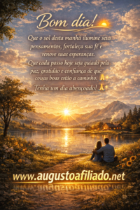 Bom dia 🌅 Bom dia! 4 de março de 2026 / 🌅 Bom dia!Que o sol desta manhã ilumine seus pensamentos, fortaleça sua fé e renove suas esperanças.Que cada passo hoje seja guiado pela paz, gratidão e confiança de que coisas boas estão a caminho.Tenha um dia abençoado! 🙏✨