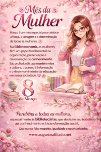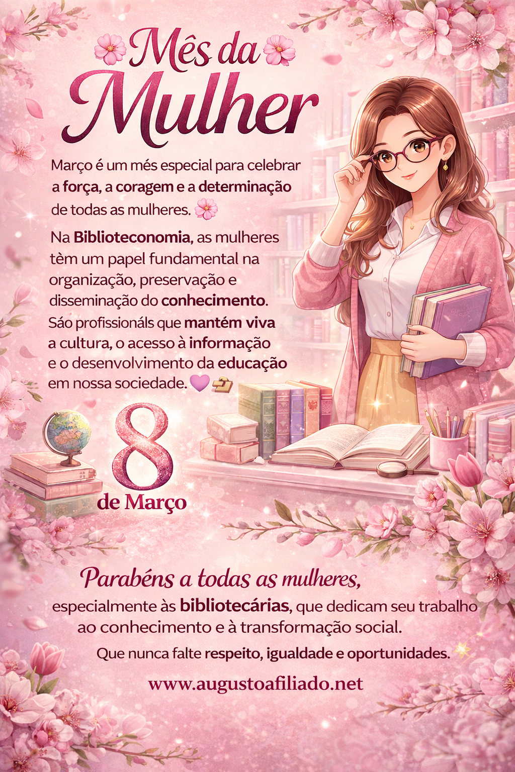 Parabéns a todas as mulheres, especialmente às bibliotecárias e profissionais da informação, que dedicam seu trabalho ao conhecimento e à transformação social.