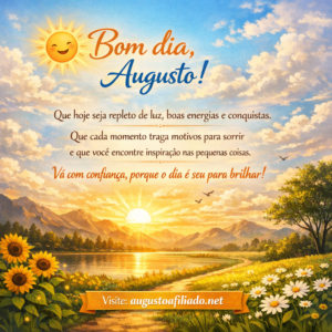 Que hoje seja repleto de luz, boas energias e conquistas. Que cada momento traga motivos para sorrir e que você encontre inspiração nas pequenas coisas. Vá com confiança, porque o dia é seu para brilhar!