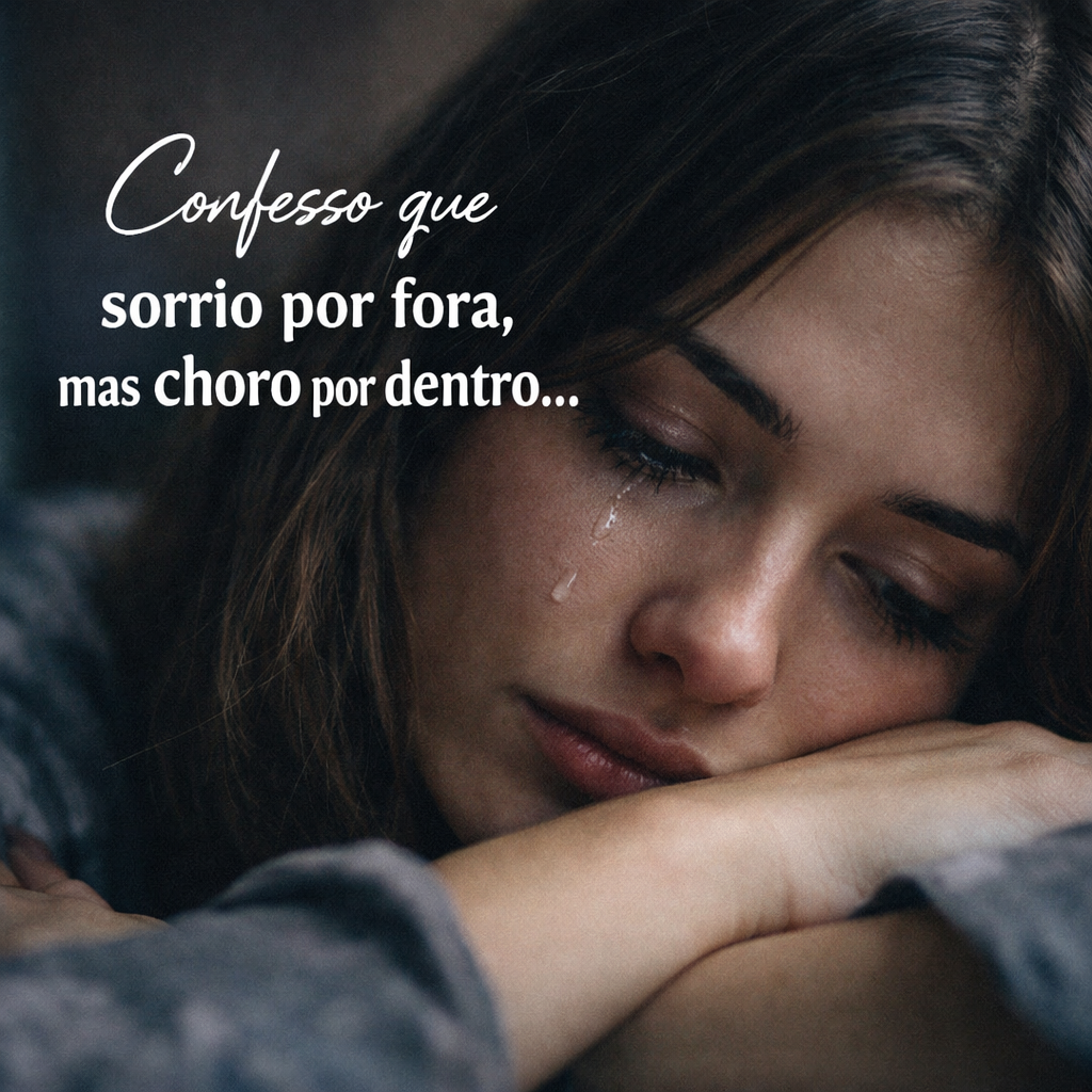 “Confesso que sorrio por fora, mas choro por dentro…” em um estilo minimalista e impactante.