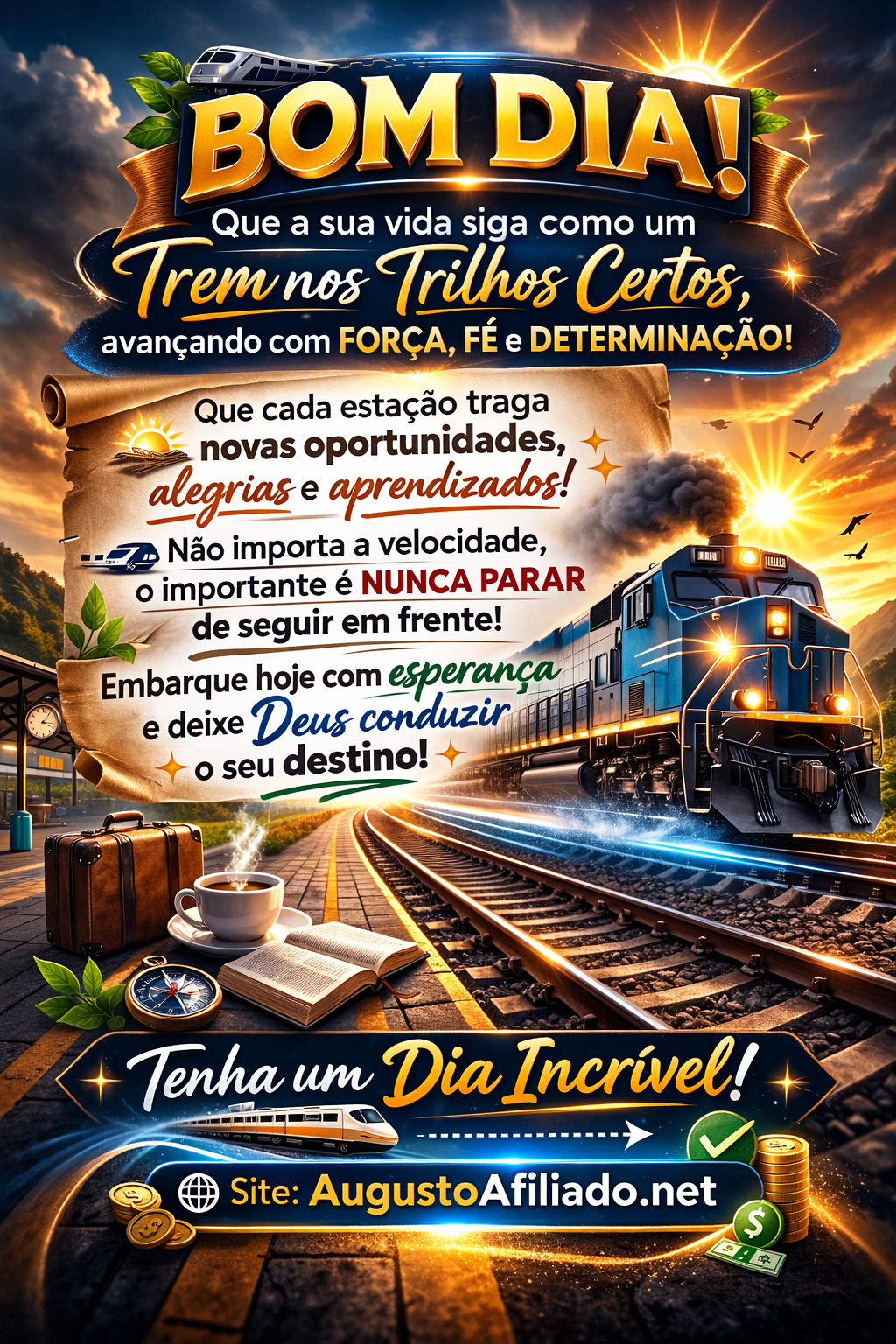 Que a sua vida siga como um trem nos trilhos certos, avançando com força, fé e determinação.