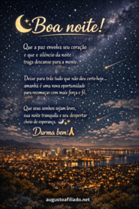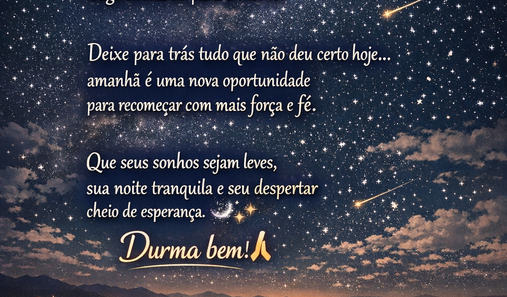 Que seus sonhos sejam leves, sua noite tranquila e seu despertar cheio de esperança. 🌌💫
