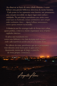 “Ao observar as luzes de uma cidade distante, é como folhear uma grande biblioteca silenciosa da mente humana. Cada ponto de luz representa uma história, um pensamento, uma emoção escondida em algum lugar entre sonhos e realidades. Na psicologia, aprendemos que, assim como essas luzes no horizonte, nossos sentimentos nem sempre estão totalmente claros — alguns brilham intensamente, outros apenas resistem na escuridão.