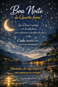 “Boa Noite de Quarta-feira! Que Deus te proteja e te dê sabedoria para enfrentar os desafios do dia a dia. Confie, amanhã será um novo recomeço!”