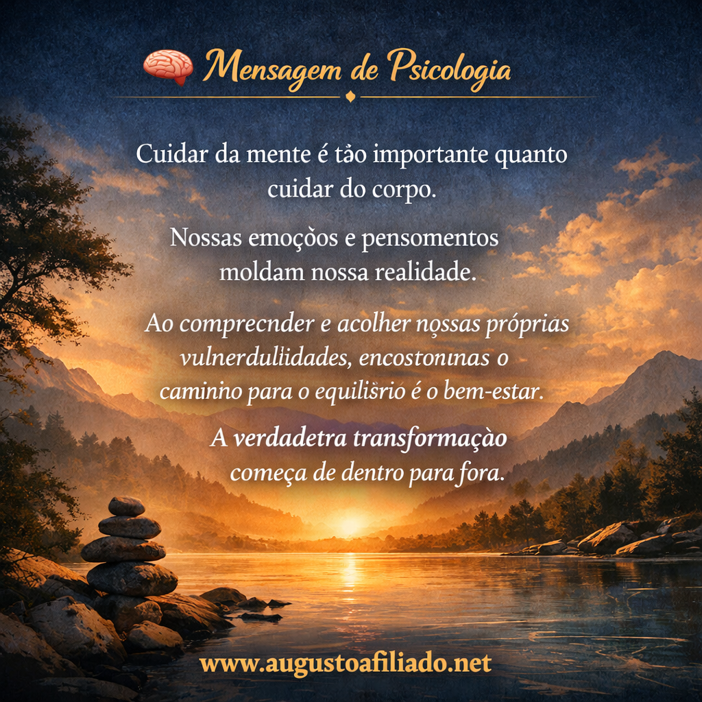 🧠 Mensagem de Psicologia “Cuidar da mente é tão importante quanto cuidar do corpo. Nossas emoções e pensamentos moldam nossa realidade. Ao compreender e […]