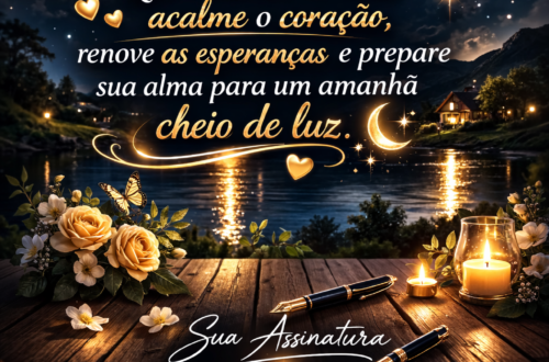 Boa noite!Que Deus acalme seu coração,leve embora todo cansaço do diae encha sua noite de paz e tranquilidade. Que os seus sonhos sejam leves,seu descanso seja profundoe que amanhã traga novas oportunidadese muitas bênçãos para sua vida. ✨ Durma bem e tenha uma noite abençoada!