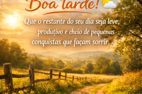 Uma mensagem de boa tarde que transmite leveza, positividade e incentivo, desejando que o dia siga produtivo e repleto de pequenas conquistas capazes de trazer sorrisos.