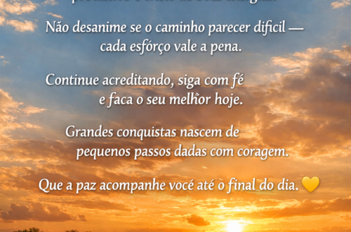 Boa tarde!Que o restante do seu dia seja leve, produtivo e cheio de boas energias.Não desanime se o caminho parecer difícil — cada esforço vale a pena.Continue acreditando, siga com fé e faça o seu melhor hoje.Grandes conquistas nascem de pequenos passos dados com coragem.Que a paz acompanhe você até o final do dia. 💛 Autor Augusto alves