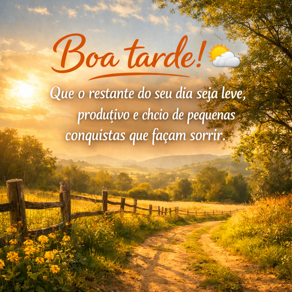Uma mensagem de boa tarde que transmite leveza, positividade e incentivo, desejando que o dia siga produtivo e repleto de pequenas conquistas capazes de trazer sorrisos.